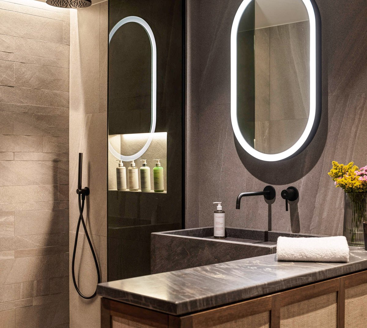 Are you and your partner enthusiasts of watching series and playing video games even on vacation? The double room has everything you need to have fun without having to bring anything from home. It has a double bed and, among its services, includes the taps with screen, smart mirrors with YouTube, TV and last generation W.C. with automatic heating lid, water jets and air for drying, among others.